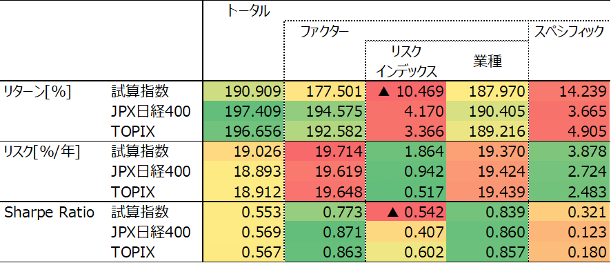 (1)試算指数期間累積アクティブリターン/アクティブリスク分解