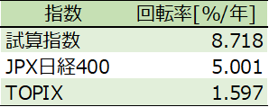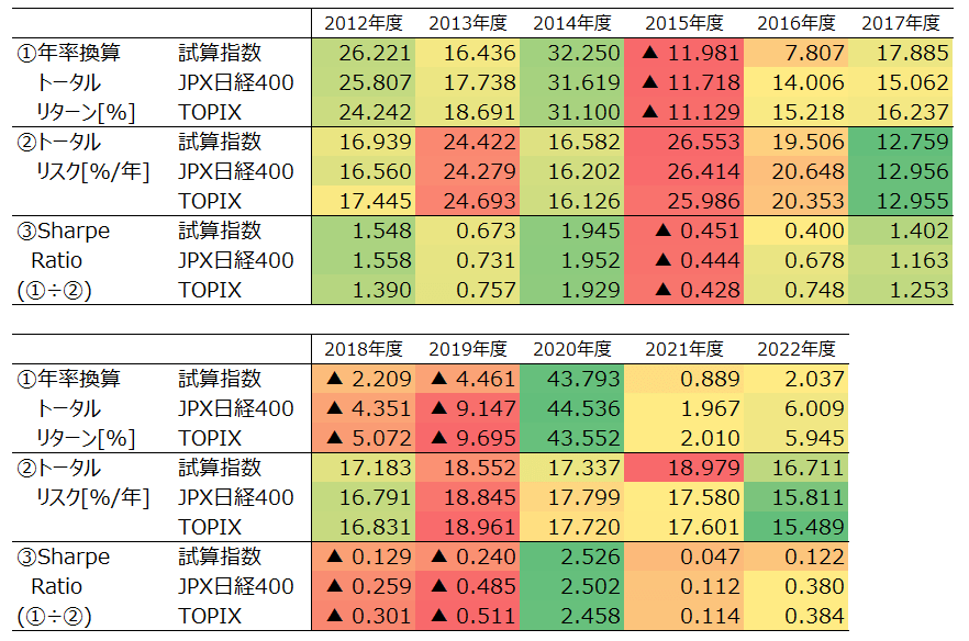 以上をNPMServices収録のデータを用いて計算し、NPM ManagerおよびNPM Reporterで計算した結果を整理しました。計測期間は2012年4月2日から2023年3月31日とします。