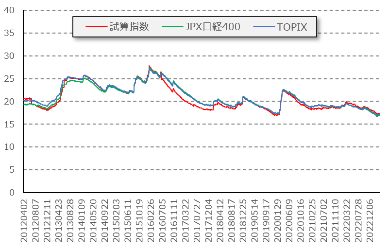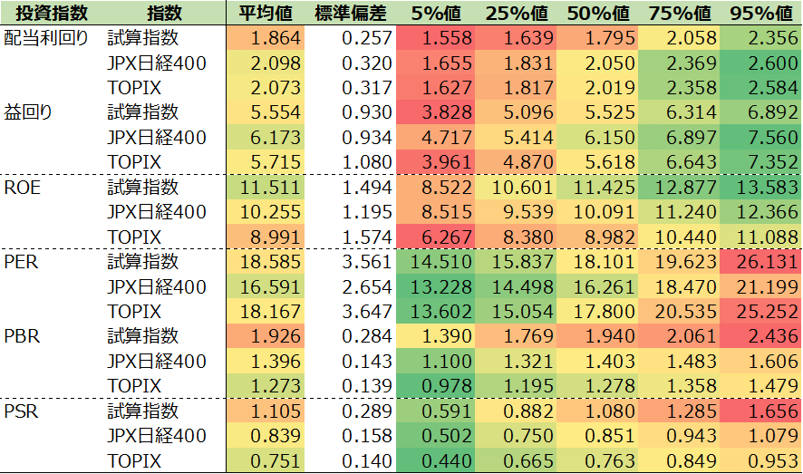 (1)指数別 投資指標の統計量(毎月末値を集計)