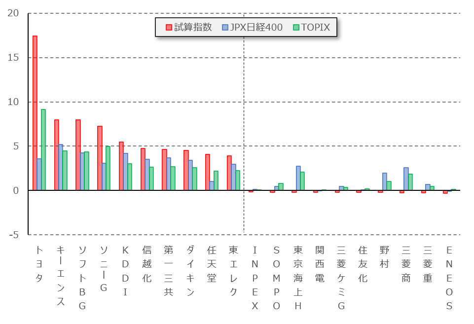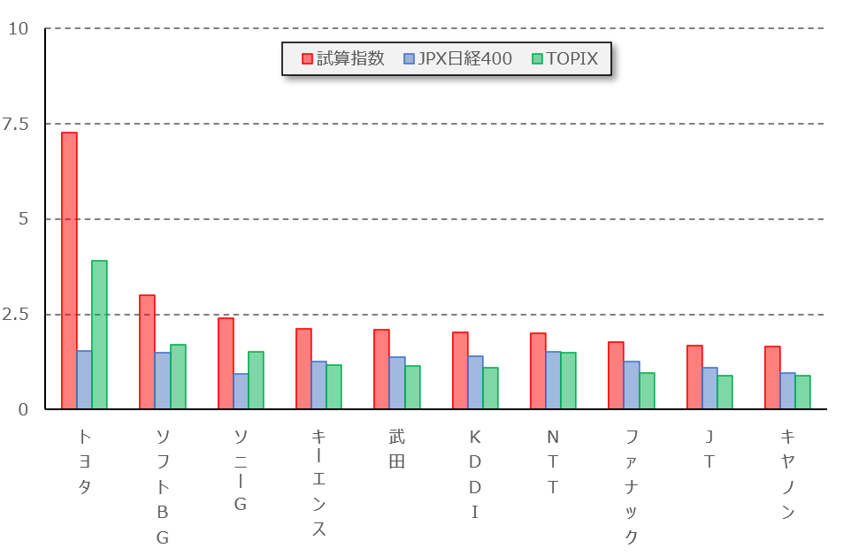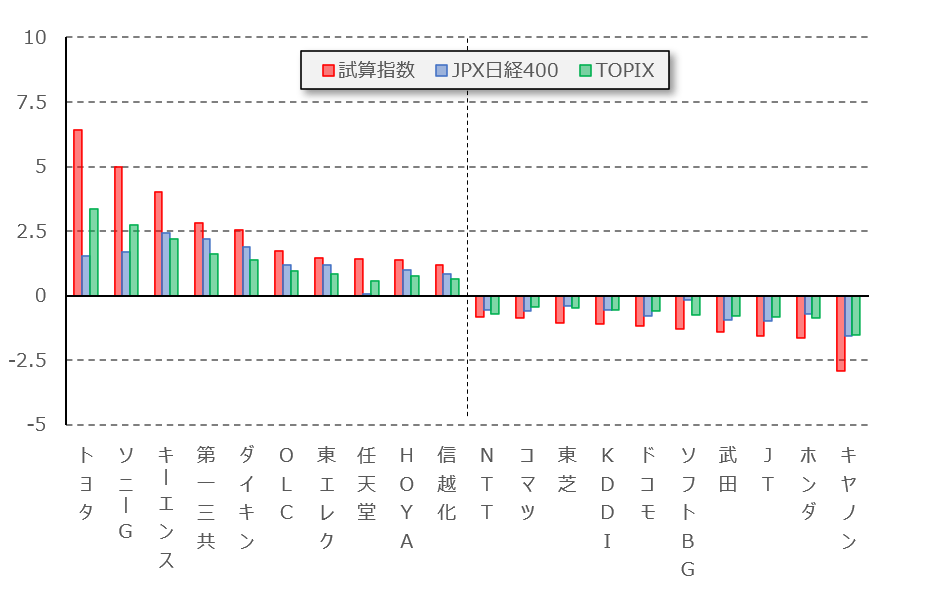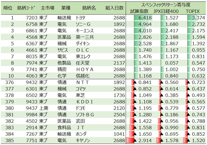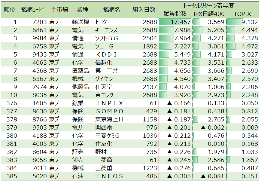 10.結果⑨:試算指数構成銘柄トータルリターン寄与度