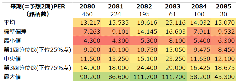 来期(予想2期)PER分布