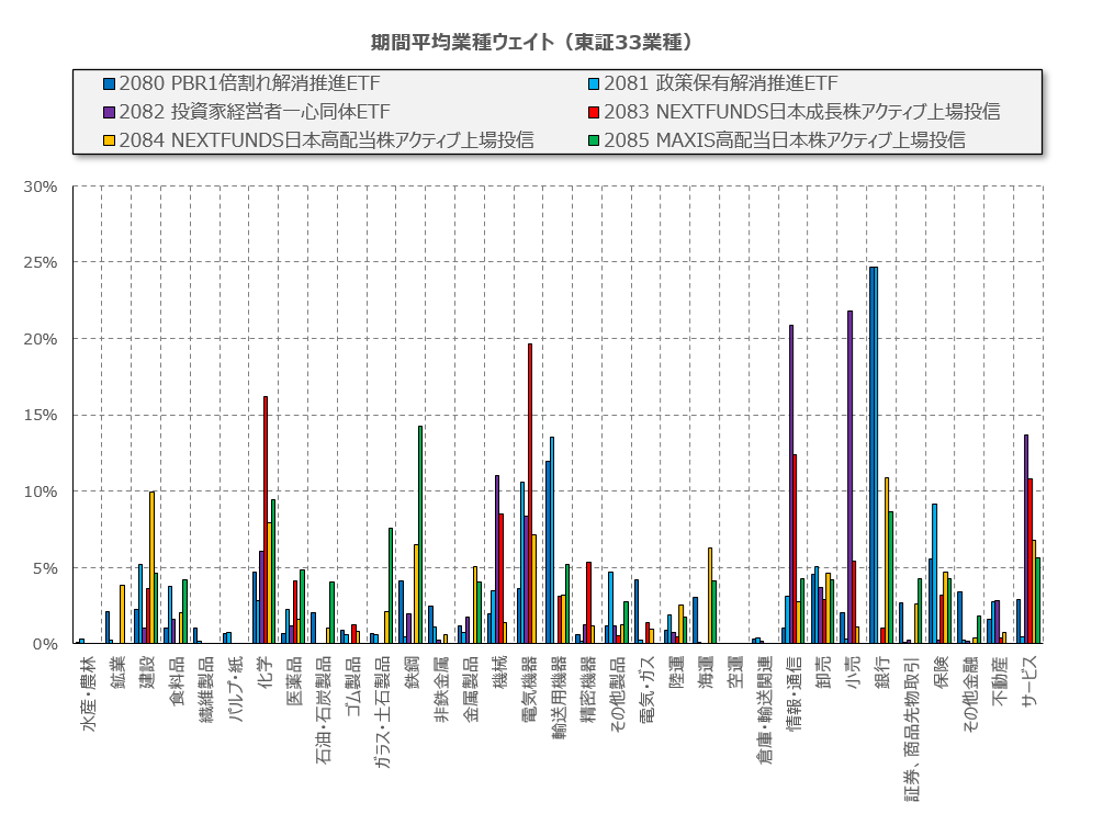 銘柄別に取った業種構成比の期中平均は以下の【図7】のとおりです。