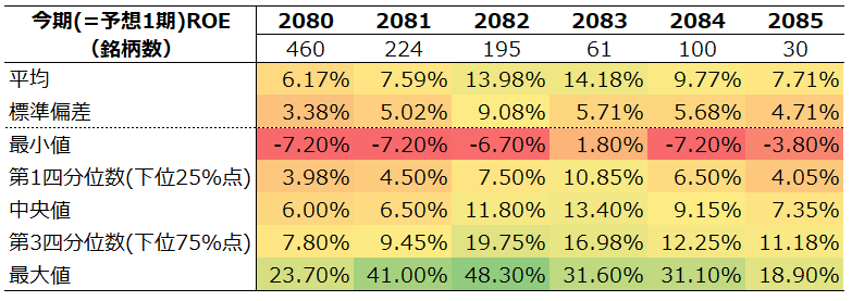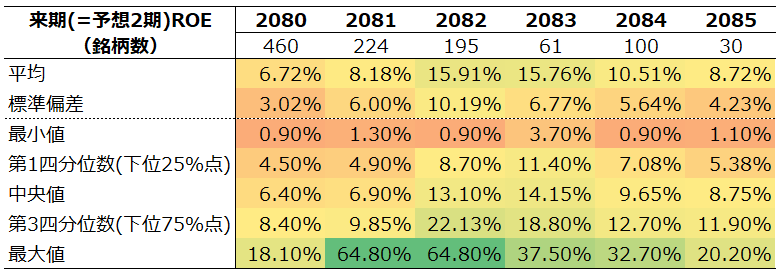 来期(予想2期)ROE分布