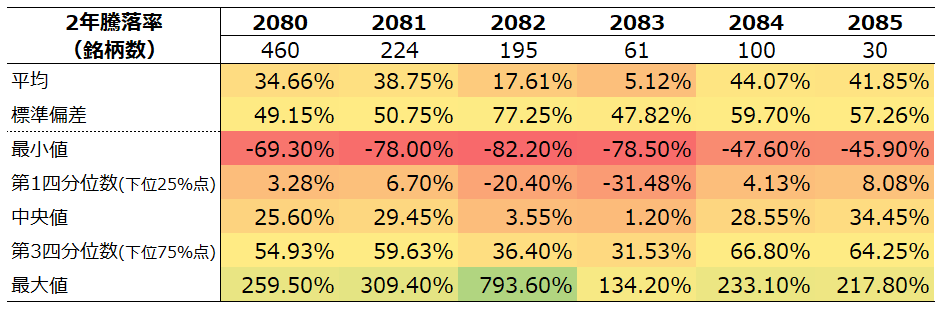 2年 騰落率分布