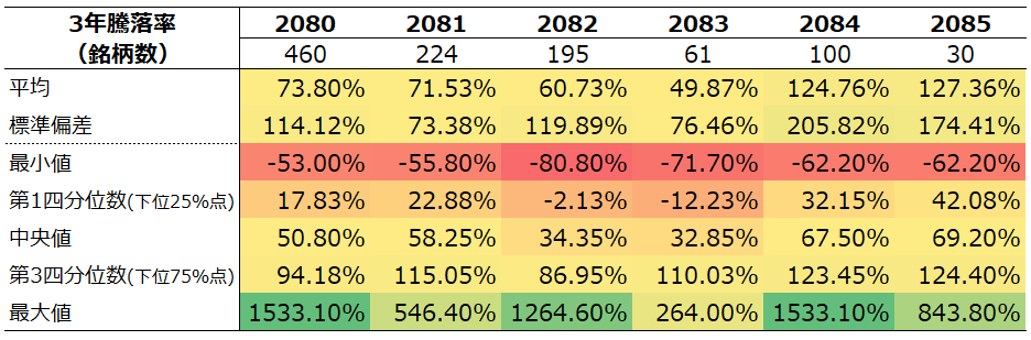 3年 騰落率分布