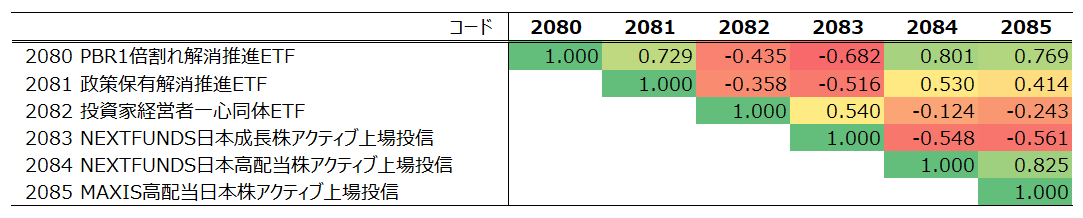 以上から、今回上場した6銘柄はバリュー系(2080,2081)、グロース系(2082,2083)、高配当系(2084,2085)の3カテゴリーに分類できます。